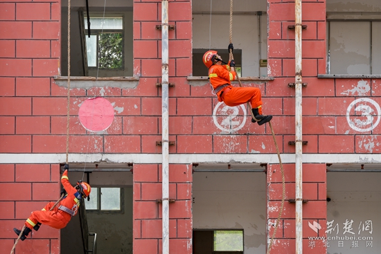 此次比武競賽活動設(shè)置有5000米跑、4×400米接力、4×100米游泳接力、繩索攀爬、負重登10樓、攀登15米金屬拉梯操和業(yè)務(wù)理論考試七個項目。