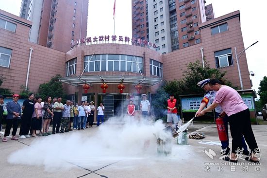 理論學(xué)習(xí)結(jié)束后,消防宣傳員組織村民進行了使用滅火器撲救初起火災(zāi)實操訓(xùn)練,進一步加深村民對消防知識的認(rèn)知,提高他們的滅火技能和實踐能力。