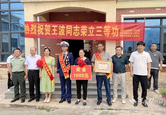 荊楚網(wǎng)(湖北日報網(wǎng))訊(通訊員 丁元中)愛國奉獻在消防,立功喜訊傳家鄉(xiāng)。6月14日上午,鄂州碧石渡鎮(zhèn)李邊村1組熱鬧非凡,鄂城區(qū)退役軍人事務(wù)局、碧石渡鎮(zhèn)武裝部一行人給榮立三等功的現(xiàn)役軍人王波軍屬送上喜報和慰問金。