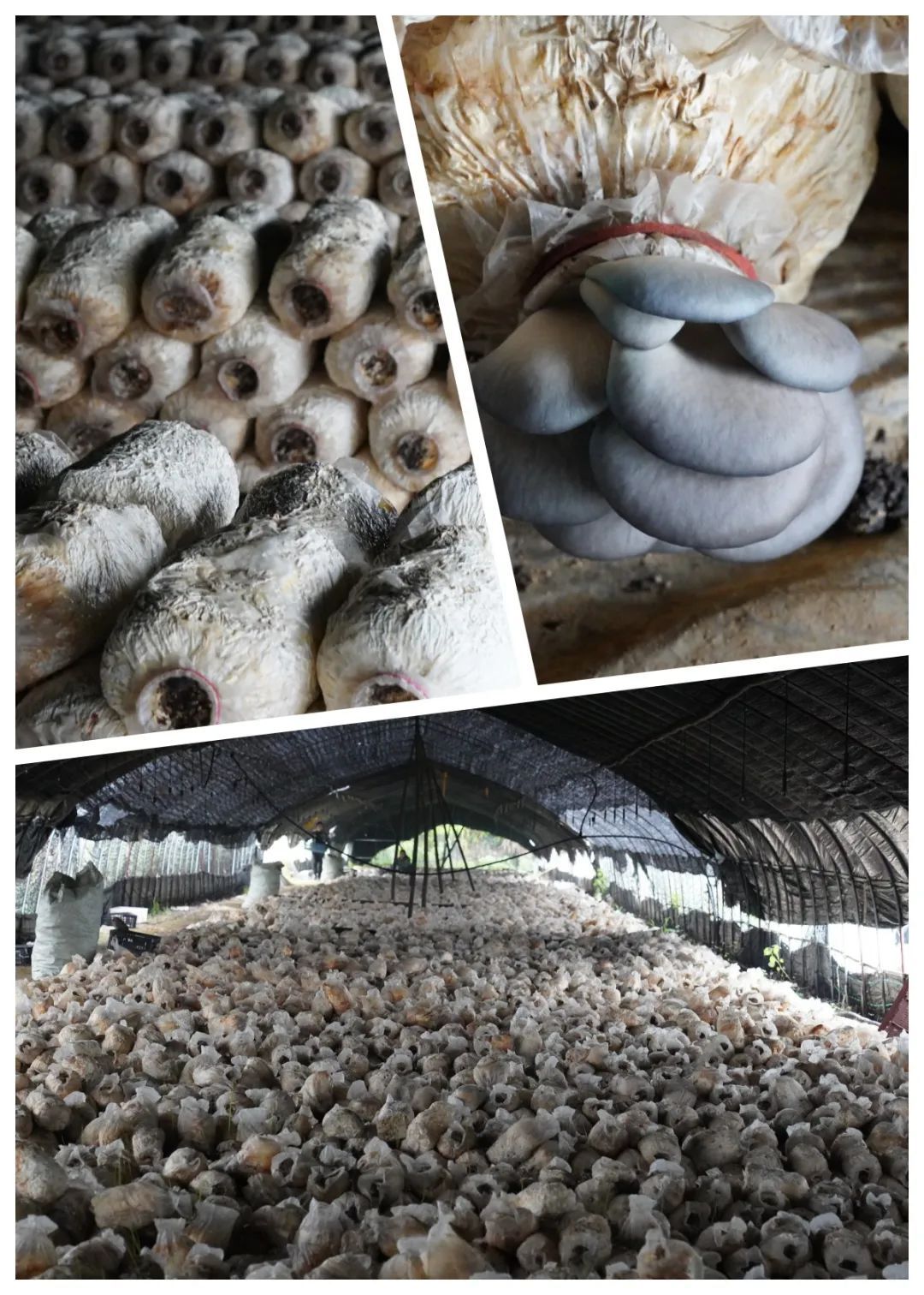正在蘑菇種植大棚里