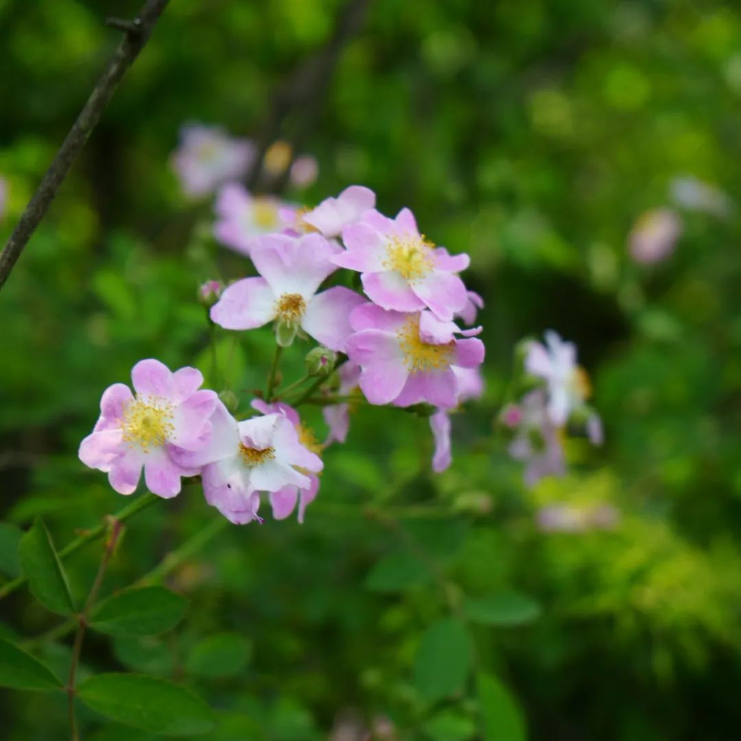 粉團(tuán)薔薇在微風(fēng)中