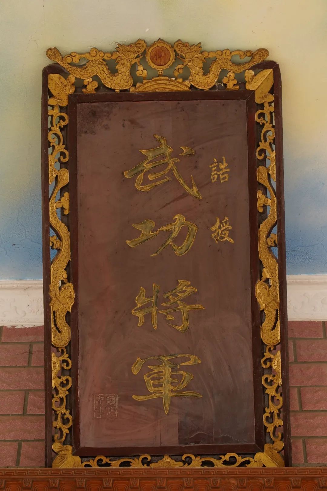 誥授武功將軍牌匾懸掛在下畈灣