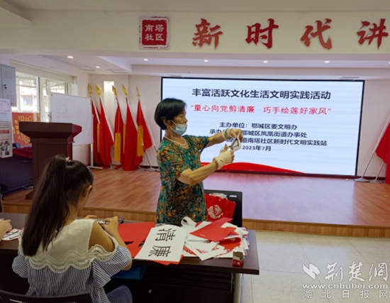 荊楚網(wǎng)(湖北日?qǐng)?bào)網(wǎng))訊(通訊員 丁元中)一刀一剪揚(yáng)正氣,一毫一厘頌清風(fēng)。7月12日上午,鄂城區(qū)鳳凰街道南塔社區(qū)聯(lián)合鄂州市婦聯(lián)、鄂城區(qū)婦聯(lián)、鳳凰街道婦聯(lián)開展了“童心向黨剪清廉,巧手繪蓮好家風(fēng)”剪紙活動(dòng),將廉政素材與傳統(tǒng)剪紙相結(jié)合,用民俗藝術(shù)展現(xiàn)清廉之風(fēng)。