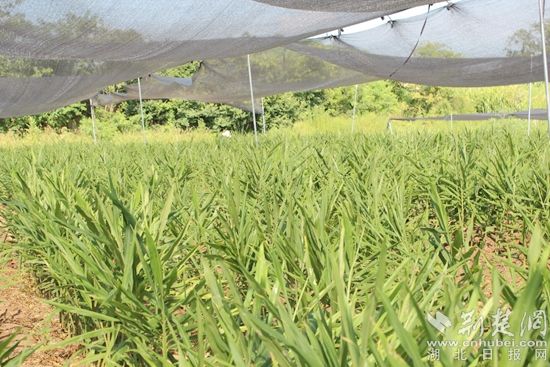 荊楚網(wǎng)(湖北日?qǐng)?bào)網(wǎng))訊(通訊員 葛昆樂(lè) 馬先禮)8月4日上午,位于鄂城區(qū)汀祖鎮(zhèn)劉顯村的鄂城黃姜育種示范基地里,120畝黃姜長(zhǎng)勢(shì)喜人,十多名工作人員正在進(jìn)行田間管理,為黃姜施肥、鋤草。