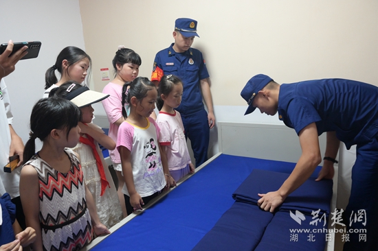 孩子們還走進(jìn)了消防員的宿舍,看到疊得如同豆腐塊般的被子,大家紛紛豎起了大拇指,都被消防員高度的自律性所震撼。消防員為青少年講解了“豆腐塊”被子的疊法,大家學(xué)習(xí)熱情高漲,紛紛模仿、動手操作?!敖裉斓膮⒂^讓我感受到了消防叔叔們的勇敢和擔(dān)當(dāng)。我以后也要成為一名光榮的消防員,守護(hù)大家的安全和平安?!币晃粎⒓踊顒拥男∨笥颜f道。