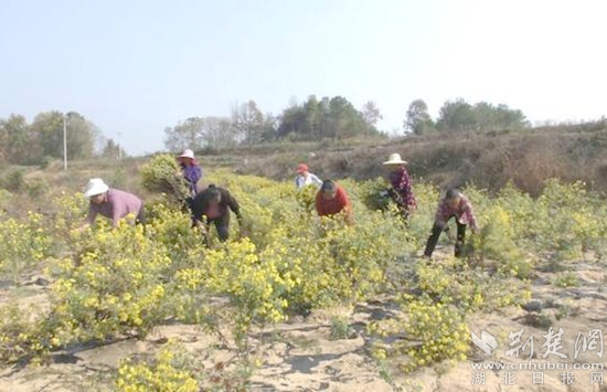 近年來(lái),紅安縣七里坪鎮(zhèn)因地制宜謀發(fā)展,做活野菊花文章。據(jù)鎮(zhèn)長(zhǎng)黃紅星介紹,通過(guò)多年努力,該鎮(zhèn)現(xiàn)已建成一個(gè)由南到北、全長(zhǎng)20公里的菊花產(chǎn)業(yè)帶。這個(gè)產(chǎn)業(yè)帶途經(jīng)60多個(gè)村,沿線種植野菊花3萬(wàn)余畝,集科研、種植、加工、銷(xiāo)售、旅游于一體,年接待游客10萬(wàn)人次以上。