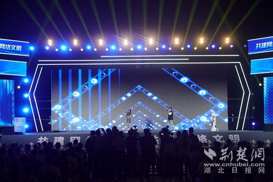 舞臺上,人形機器人伴隨著青春旋律緩緩走來,一曲互動說唱表演《網(wǎng)絡(luò)文明一起來》,既現(xiàn)場感滿滿,又未來感十足,彰顯黃石這座城市和整個湖北年輕人,他們向“網(wǎng)”生活的時尚與活力。