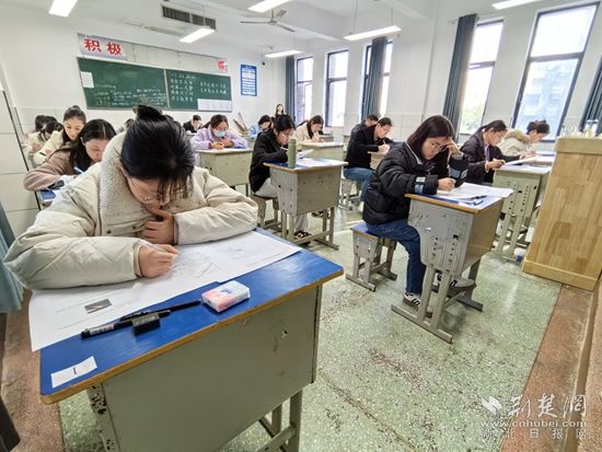 當(dāng)天早上8時(shí)許,記者來到黃石城區(qū)考點(diǎn)——黃石十六中。只見黃石各直屬高中的書記、校長(zhǎng)在校門口為前來“趕考”的教師加油鼓勁。記者注意到,參加考試的教師當(dāng)中,還包括了部分學(xué)校的副校長(zhǎng)、主任等管理人員。