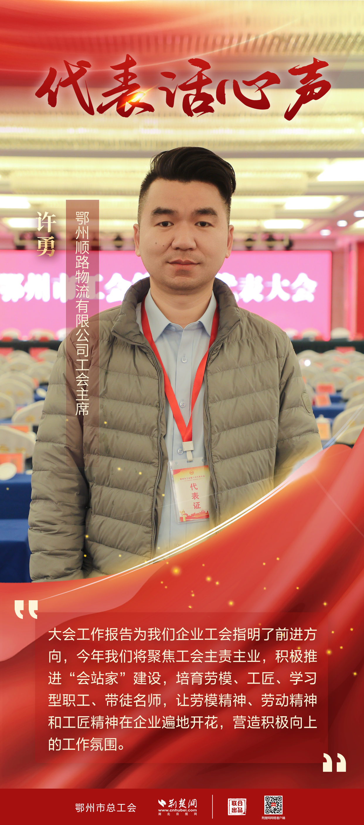荊楚網(wǎng)(湖北日報(bào)網(wǎng))訊(記者 姜夢瑤 實(shí)習(xí)生 趙永春、張玖杰 通訊員 魏君)1月4日,鄂州市工會第八次代表大會開幕,來自全市各行各業(yè)的233名代表一同談發(fā)展、說變化、道期盼。