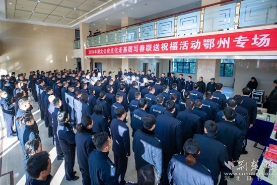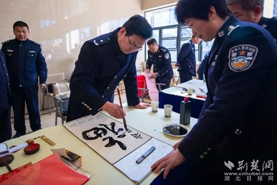 荊楚網(wǎng)(湖北日報(bào)網(wǎng))訊(通訊員 王廳 張宏斌)迎春納福送春聯(lián),翰墨飄香暖警心。1月23日上午,省廳政治部、湖北公安文聯(lián)組織全省公安機(jī)關(guān)書法藝術(shù)家走進(jìn)鄂州市公安局,開展寫春聯(lián)送祝?;顒?dòng)。