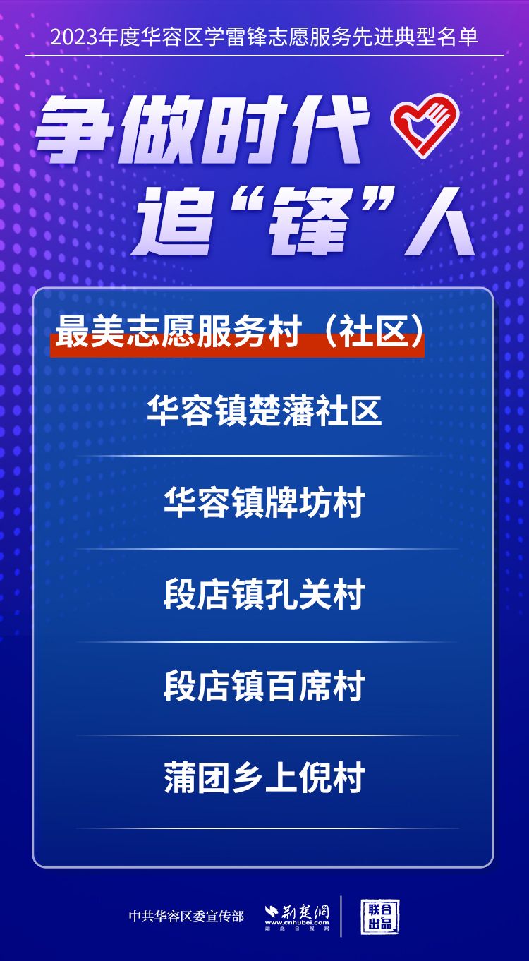 荊楚網(wǎng)(湖北日?qǐng)?bào)網(wǎng))訊(記者王焱堯 通訊員劉佳源)最美志愿者、最佳志愿服務(wù)組織、最佳志愿服務(wù)項(xiàng)目、最美志愿家庭……3月5日,武漢新城展示中心,鄂州市華容區(qū)公布2023年度學(xué)雷鋒志愿服務(wù)先進(jìn)典型名單。