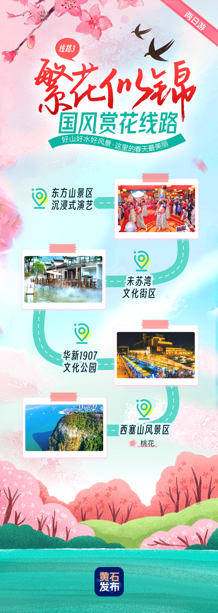 東方山景區(qū)沉浸式演藝-未蘇灣文化街區(qū)-華新1907文化遺址公園-西塞山風景區(qū)。