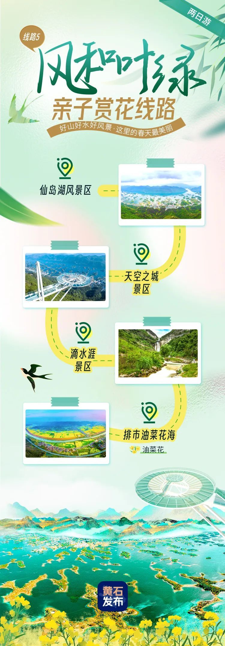 仙島湖風景區(qū)-天空之城景區(qū)-滴水涯景區(qū)-排市油菜花海。
