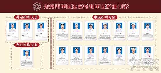 2022年5月12日,鄂州市中醫(yī)醫(yī)院開設(shè)怡和中醫(yī)護理門診,是全市首家集護理、科研、教學于一體具有中醫(yī)特色的護理門診,開展灸法、罐法、刮痧、穴位貼敷、放血、中藥熏藥、穴位注射等50余項中醫(yī)特色護理療法,為廣大人民群眾提供專業(yè)的“簡便驗廉”中醫(yī)特色護理療法,以及中醫(yī)膳食、生活起居、情志調(diào)攝、中醫(yī)養(yǎng)生指導。