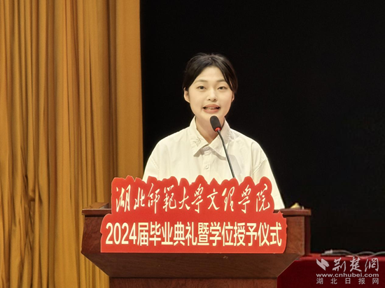 根據(jù)安排,現(xiàn)場(chǎng)分別宣讀了《關(guān)于授予2024屆畢業(yè)生學(xué)士學(xué)位的決定》和《關(guān)于表彰2024屆優(yōu)秀畢業(yè)生的決定》。隨后,優(yōu)秀畢業(yè)生代表劉佳欣、優(yōu)秀在校生代表聶菁蕓、優(yōu)秀校友代表李震威、教師代表肖燕琴分別發(fā)言。