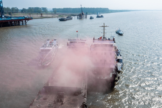 記者看到,演習由局交管中心對演習水域實施臨時交通管制、航道部門調(diào)整演習水域航標開始,演習科目為先導索脫落打撈、船舶甲板起火、船舶溢油處置、故障船舶拖帶作業(yè)、人員落水應急處置等多科目綜合性演習,實景模擬了燕磯大橋后續(xù)施工作業(yè)可能遇到的各種水上突發(fā)事件。