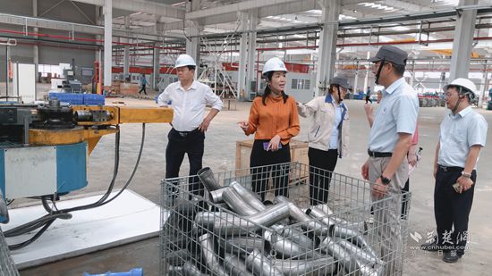 朱明鳳(左2)深入車間調(diào)研。 通訊員 供圖