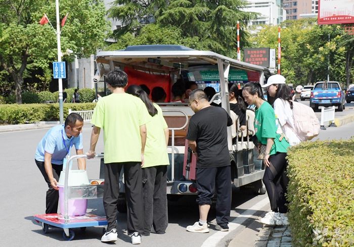 完成報到手續(xù)后,新學(xué)子們帶上行李,乘坐觀光車直達(dá)宿舍,同時,也開啟了他們的校園探索之旅。記者發(fā)現(xiàn),這些校車觀光車不僅外觀新穎、內(nèi)飾舒適,司機還饒有興致地為新學(xué)子們詳細(xì)介紹校園的歷史沿革、建筑風(fēng)格、教學(xué)設(shè)施以及各個學(xué)院的特色。