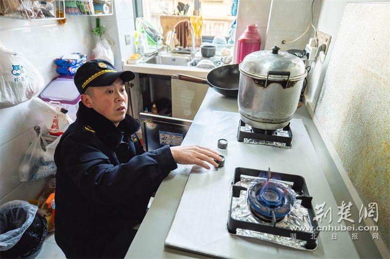 城管部門在磨山小區(qū)開展燃?xì)獍踩麄?,介紹“瓶改管”工作情況。通訊員供圖