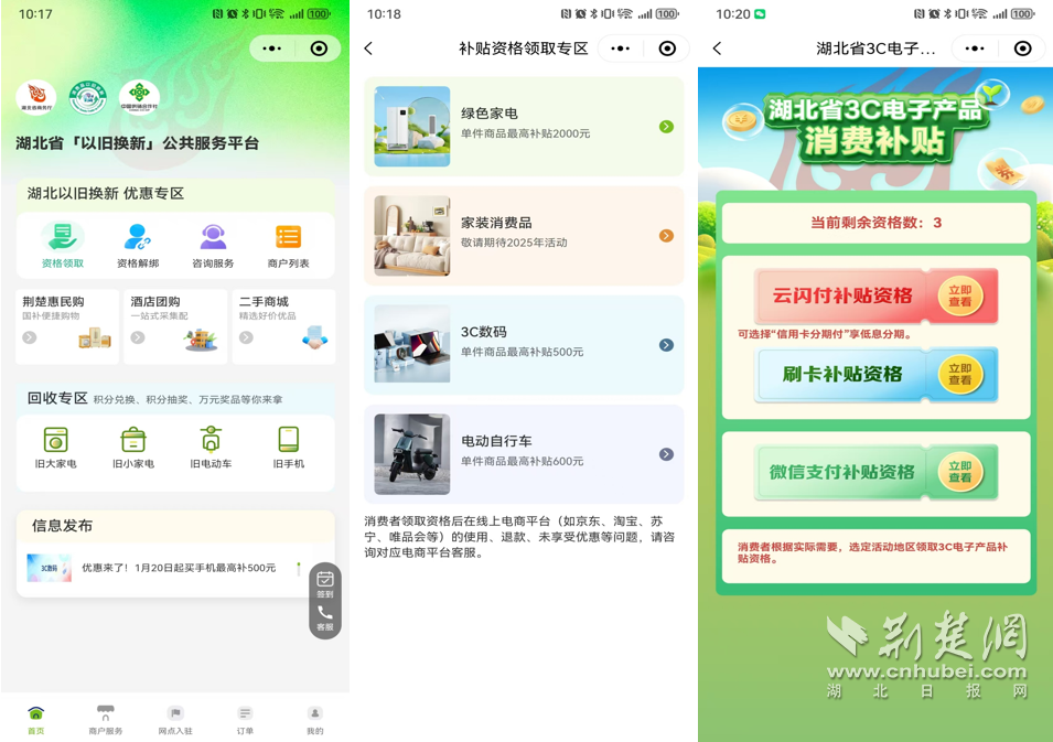 2、 選擇【3C數(shù)碼】,根據(jù)支付習(xí)慣領(lǐng)取補貼資格。選擇對應(yīng)支付渠道—提示彈框確認—進入3C電子產(chǎn)品補貼資格頁面—選擇對應(yīng)商品領(lǐng)取資格,并可查看活動規(guī)則提示。