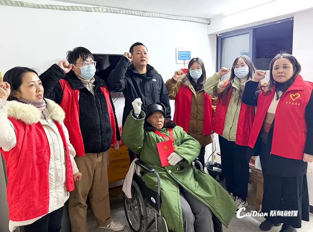 1月17日上午,龔家?guī)X社區(qū)黨員滿懷敬意,帶著精心準(zhǔn)備的生日蛋糕和米油等生活物資,來到張業(yè)榮老人家中,為他補(bǔ)辦100歲生日。張業(yè)榮佩戴著“光榮在黨50年”紀(jì)念章,深情高唱《沒有共產(chǎn)黨就沒有新中國》,與大家一起重溫入黨誓詞,講述往昔革命故事。