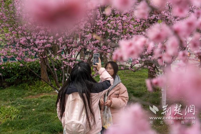 荊楚網(wǎng)(湖北日報網(wǎng))訊(通訊員 熊琪 余芳利)三月爛漫,櫻花盛開;大美江湖,迎八方來客。一座城的浪漫,都藏在櫻花里。粉白的“初美人”綴滿枝頭,微風(fēng)拂過,花瓣如雪片紛揚飄落。深紅的“寒緋櫻”似火焰般灼灼盛放,與古色古香的唐風(fēng)飛檐相映,穿越千年。