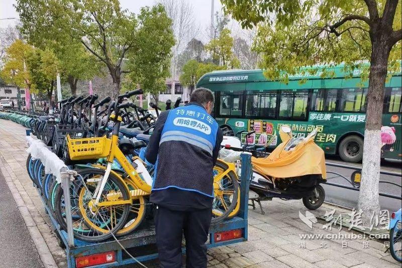 3月9日恰逢周末,在櫻園附近,共享單車運維人員駕駛著小型三輪車,在櫻園沿線往來穿梭,調(diào)配搬運共享單車。