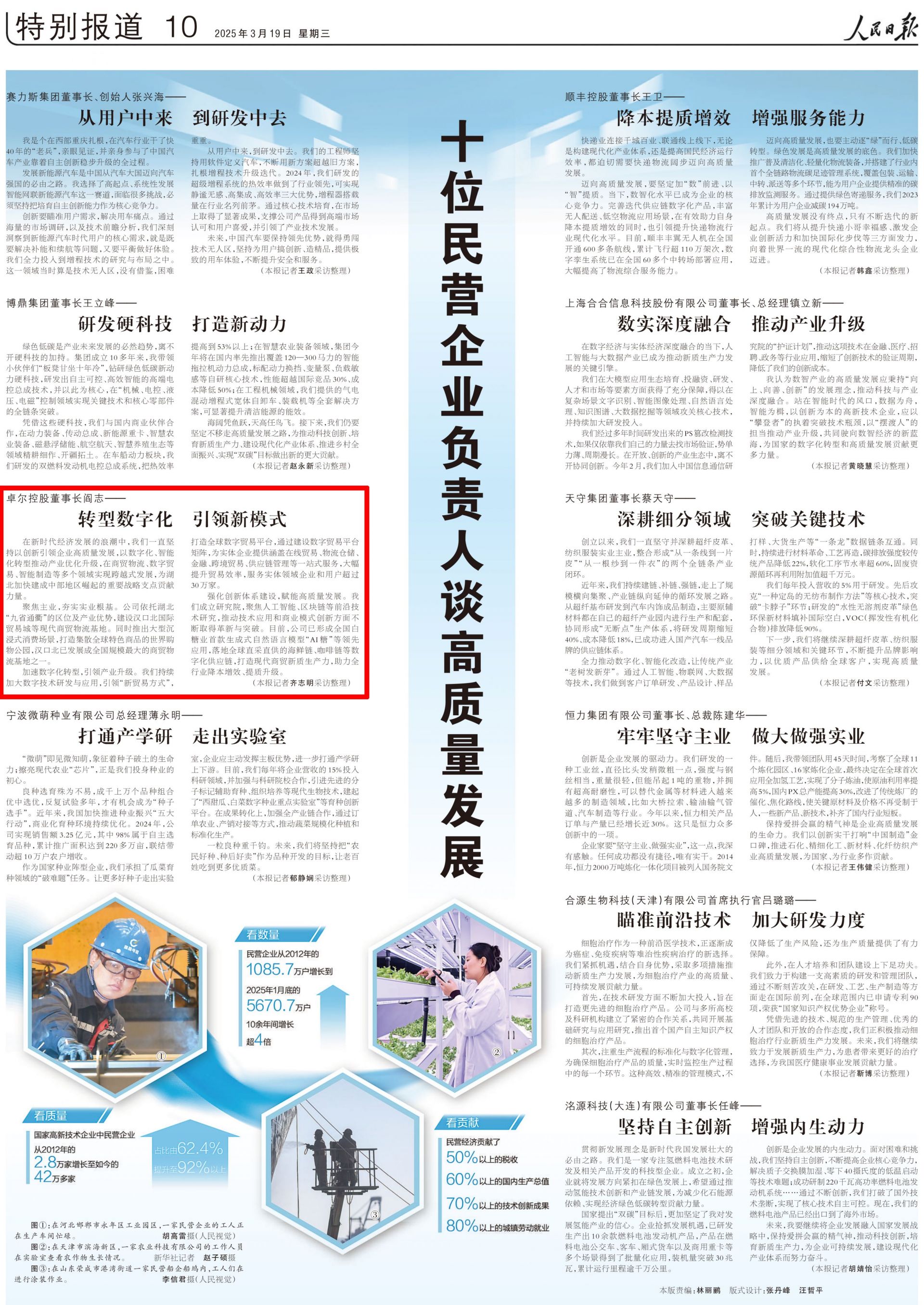 人民日?qǐng)?bào)今推出特別報(bào)道《十位民營(yíng)企業(yè)負(fù)責(zé)人談高質(zhì)量發(fā)展》,湖北卓爾控股董事長(zhǎng)閻志接受采訪——