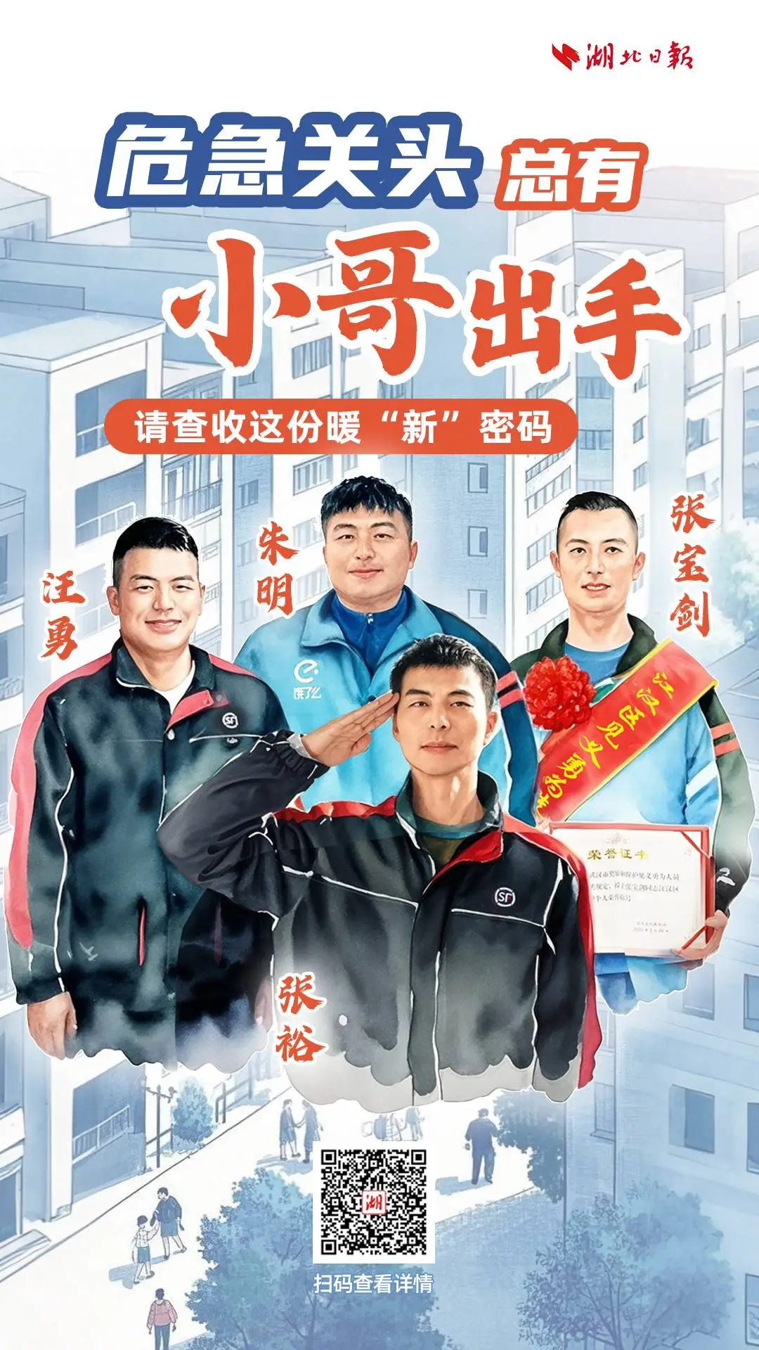 近些年來,人們發(fā)現(xiàn),這個群體不僅是物流網(wǎng)絡的末梢神經(jīng),更成為群眾安危的守護者。很多人都知道這些故事:杭州外賣騎手彭清林12米高橋縱身躍江救人,溫州快遞員羅天友救人之后悄然離開,無錫李鯤鵬憑借職業(yè)敏感識破詐騙包裹。很多人也熟悉武漢的這些名字:“最美快遞員”汪勇,“火場英雄”順豐小哥張裕,帶領(lǐng)居民撲火的騎手朱明,用攜帶的自動體外除顫器開啟緊急救人的張寶劍。