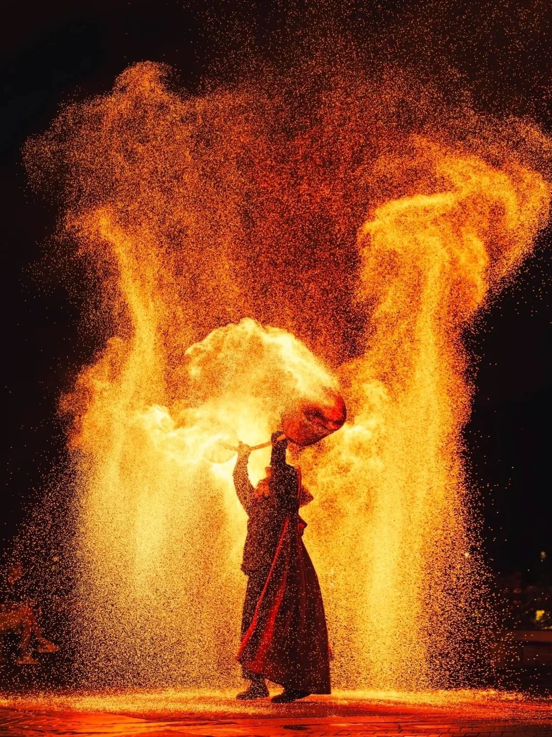 木蘭草原“醒春派對”萬人合唱、巨型風箏秀刷屏朋友圈,大型實景演出《花木蘭·云中戰(zhàn)歌》回歸開演,演出場場爆滿;勝天火把狂歡節(jié)非遺絕技“打鐵花”“噴火”震撼全場,火光點亮夜空!