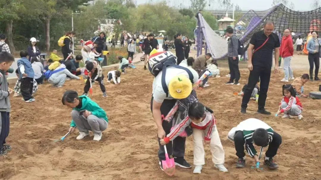 桃源集親子小鎮(zhèn)挖沙尋寶;花海樂園《木蘭從軍》實景演出游客爆滿。