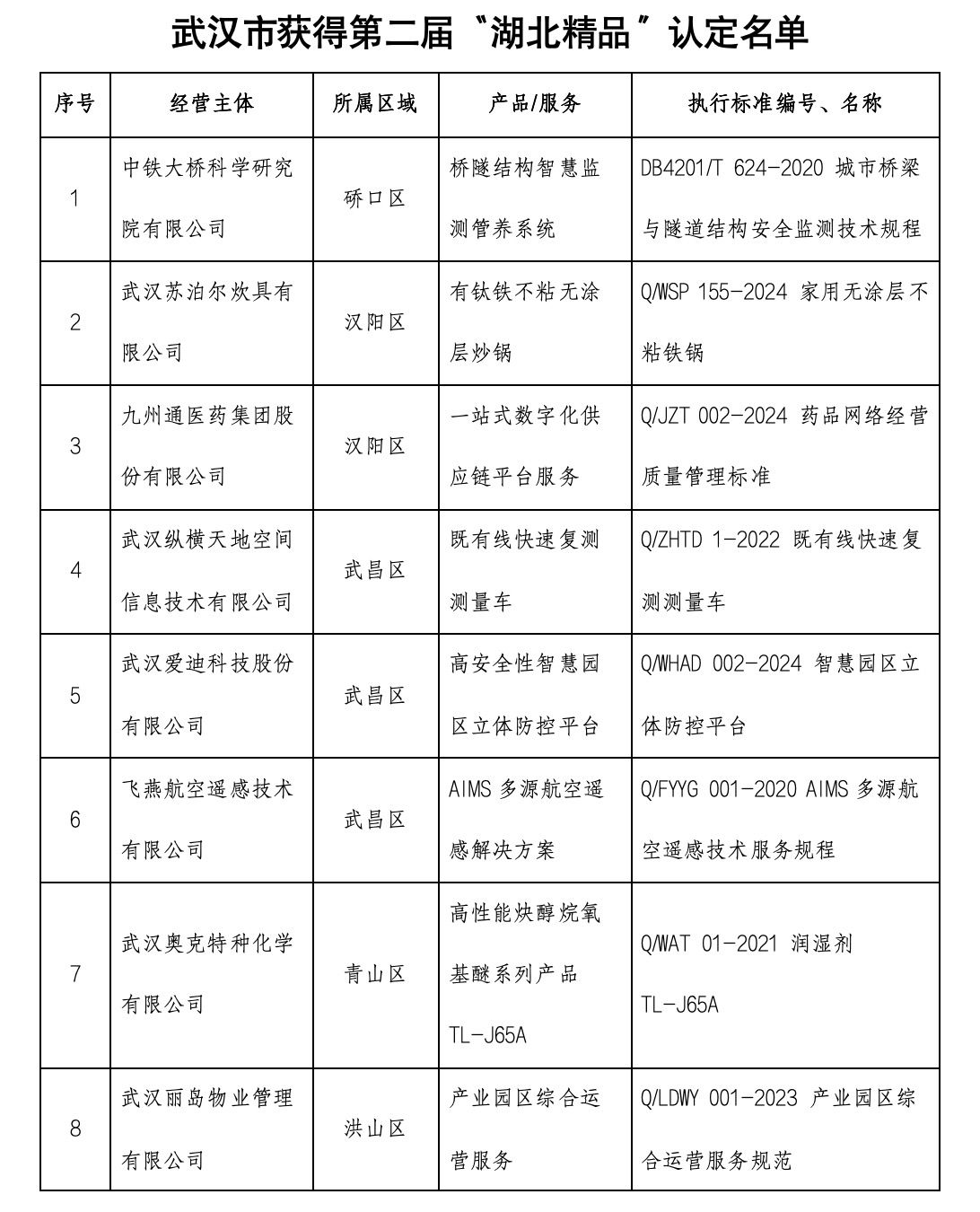 自2023年湖北省開展“湖北精品”培育和認定以來,市市場監(jiān)管局積極構筑質量品牌標桿梯隊,優(yōu)化完善“武漢精品”“湖北精品”梯次培育體系,全市417家企業(yè)進入“武漢精品”培育庫,344家企業(yè)進入“湖北精品”培育庫。2024年,武漢市35項產品(服務)被認定首屆“武漢精品”、31項產品(服務)被認定首屆“湖北精品”。