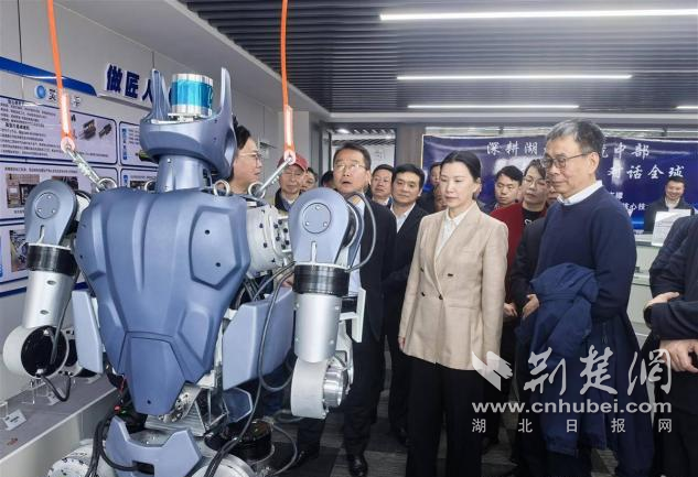 這是湖北省首個機器人領(lǐng)域技術(shù)創(chuàng)新中心,該中心由湖北科峰智能傳動股份有限公司牽頭,聯(lián)合華中科技大學(xué)、武漢大學(xué)等20余所高校院所及產(chǎn)業(yè)鏈頭部企業(yè)共建,聘請中國工程院院士陳學(xué)東擔(dān)任戰(zhàn)略咨詢委員會主任、中國科學(xué)院院士劉勝擔(dān)任學(xué)術(shù)委員會主任。這標(biāo)志湖北在機器人核心技術(shù)創(chuàng)新與產(chǎn)業(yè)轉(zhuǎn)化上邁出關(guān)鍵一步。今年亮相“新春第一會”的“天問”1號人形機器人,由武漢大學(xué)劉勝院士團隊研發(fā)。全身關(guān)節(jié)有30個自由度,靈巧手有7個自由度。它的傳感器、靈巧手、仿生關(guān)節(jié)和芯片等核心部件,80%實現(xiàn)了“鄂研鄂產(chǎn)”。