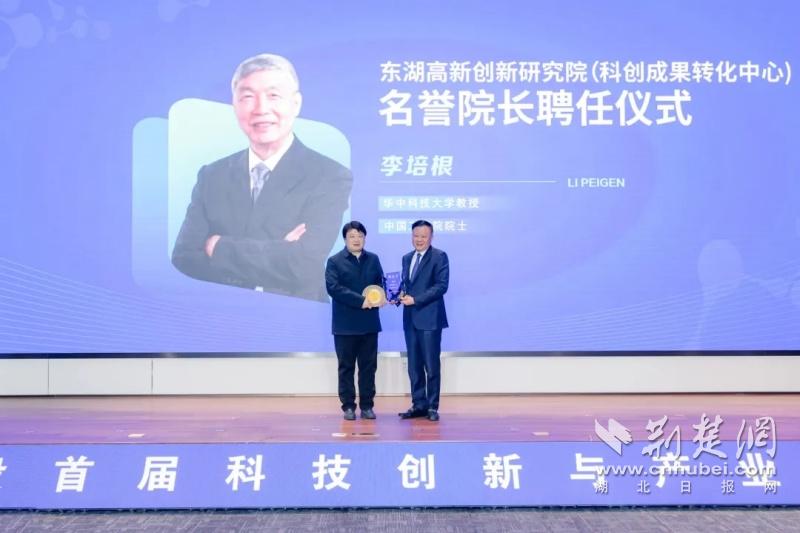 中國工程院院士李培根獲聘東湖高新創(chuàng)新研究院名譽(yù)院長,劉俊剛為東湖高新創(chuàng)新研究院專家頒發(fā)聘書。