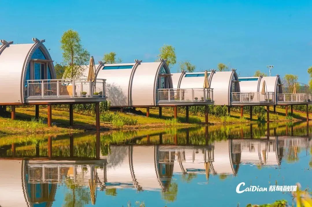 在花博匯景區(qū)中,穿越花海,遇見(jiàn)馬爾代夫同款“漂浮屋”。