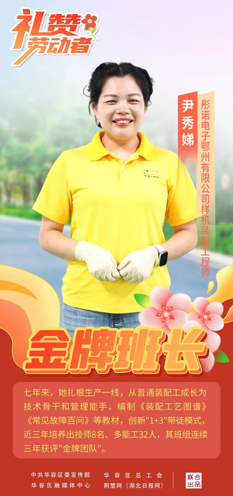 荊楚網(wǎng)(湖北日?qǐng)?bào)網(wǎng))訊(記者陶輝 通訊員張潔瓊 肖運(yùn)泉)17年前,她是廣東電子廠(chǎng)里連二極管正負(fù)極都分不清的懵懂女工。如今,她已成為彤諾電子生產(chǎn)車(chē)間“金牌班長(zhǎng)”。4月29日,好消息傳來(lái),尹秀娣榮獲鄂州五一勞動(dòng)獎(jiǎng)?wù)隆?/p>