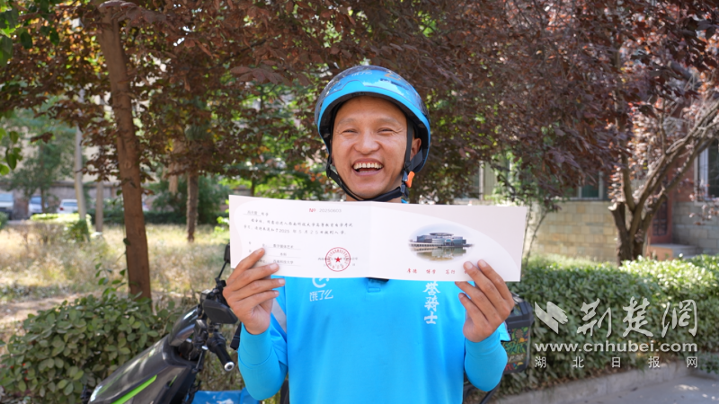 荊楚網(wǎng)(湖北日報網(wǎng))訊(通訊員 易曄)“很多人會覺得,39歲再去讀大學可能有點晚了,但對我來說,現(xiàn)在一切都剛剛好,我期待穿上學士服的那天?!?月21日,餓了么藍騎士馮天雷正準備結(jié)束一天跑單任務(wù)時,收到了一則包裹抵達提醒,是來自西南科技大學數(shù)字傳媒藝術(shù)專業(yè)的錄取通知書。