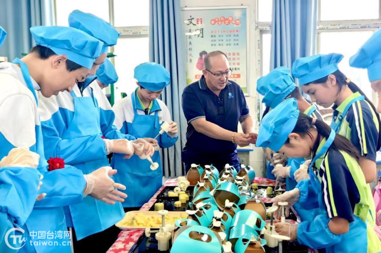 活動中,武漢臺協(xié)及臺商代表向?qū)W校捐贈電腦設備、教育資助金及節(jié)日禮物,學生回贈感謝卡。隨后,臺商與30余名學生分組結(jié)對,共同體驗綠豆糕制作、蛋糕裱花等傳統(tǒng)文化DIY項目。