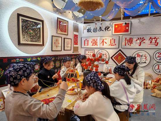 學(xué)校校長王敏介紹,17年來,學(xué)校實踐探索編寫了屬于自己的黃梅挑花校本教材;17年來,學(xué)校每年在4至6年級挑選100多名學(xué)生,充實到挑花社團,賡續(xù)傳承技藝;17年來,全校師生累計創(chuàng)作了一萬余幅制作精良的挑花作品。