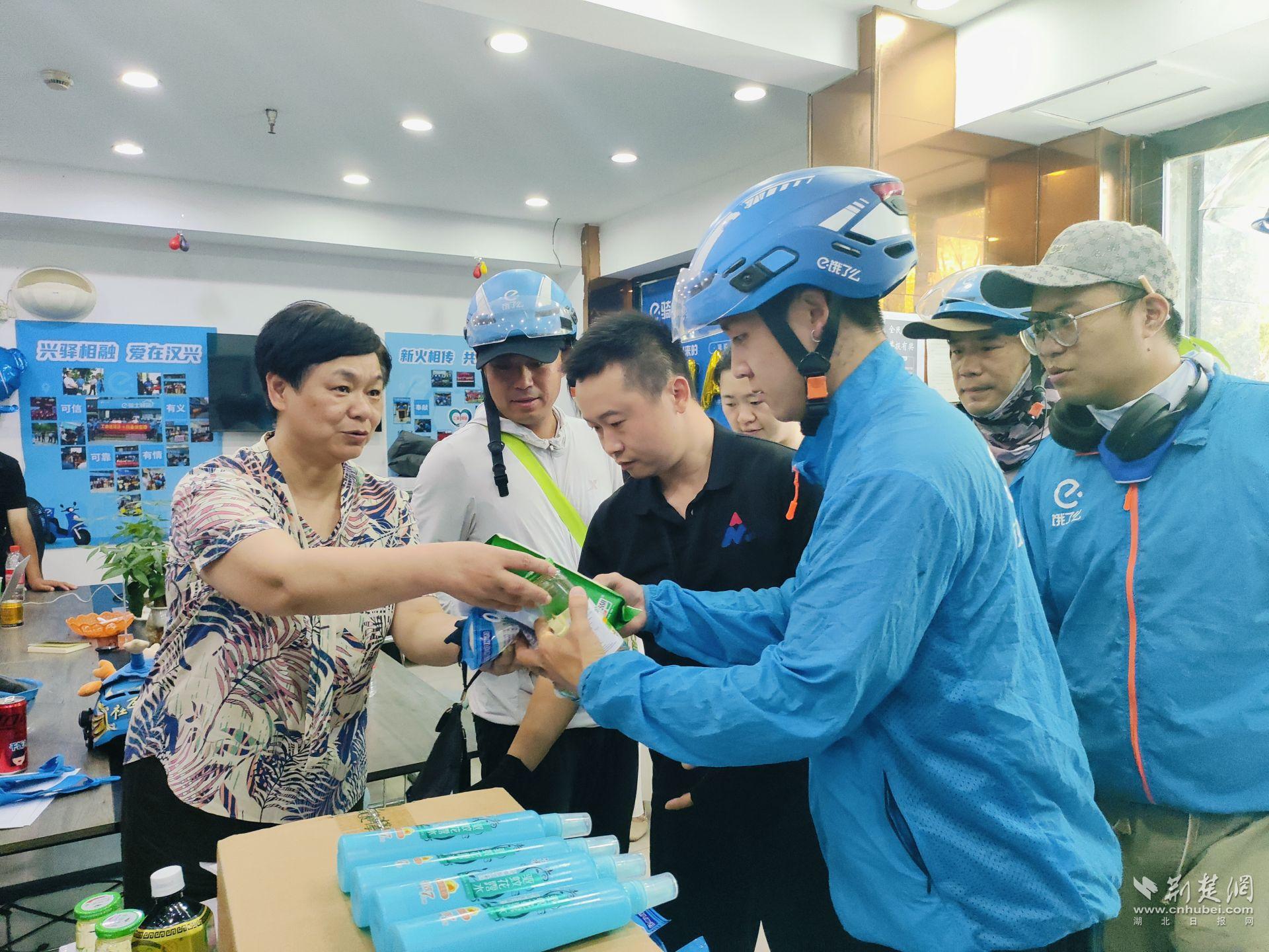 就在前一天,江漢區(qū)總工會來到紅旗渠路驛站,為高溫中堅守崗位的外賣騎手們送去綠豆、花露水、酸梅膏、冰袖等共計50份防暑物資,將清涼和關(guān)懷一并送到一線勞動者手中。