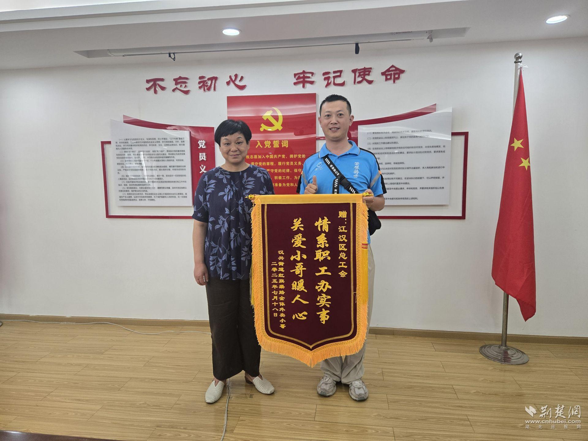荊楚網(wǎng)(湖北日報網(wǎng))訊(記者 何婧 通訊員 羅驗)“關(guān)愛小哥暖人心,情系職工辦實(shí)事”,7月17日上午,江漢區(qū)總工會收到了一面來自漢興街道餓了么紅旗渠路驛站的錦旗。