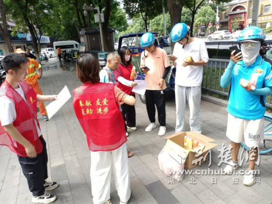 荊楚網(wǎng)(湖北日報網(wǎng))訊(記者 何婧 實習(xí)生 陳靖南 通訊員 徐鼎)烈日炎炎,關(guān)愛不缺席。7月25日,武漢高溫持續(xù),江漢區(qū)北湖街道妙三社區(qū)湖錦酒樓“暖新驛站”前人氣高漲,“炎炎夏日送清涼,絲絲關(guān)愛暖心房”主題慰問活動在此熱情開啟,為一線戶外工作者送上清涼包物資,帶來一份及時的守護,也送去一座城市的溫度。