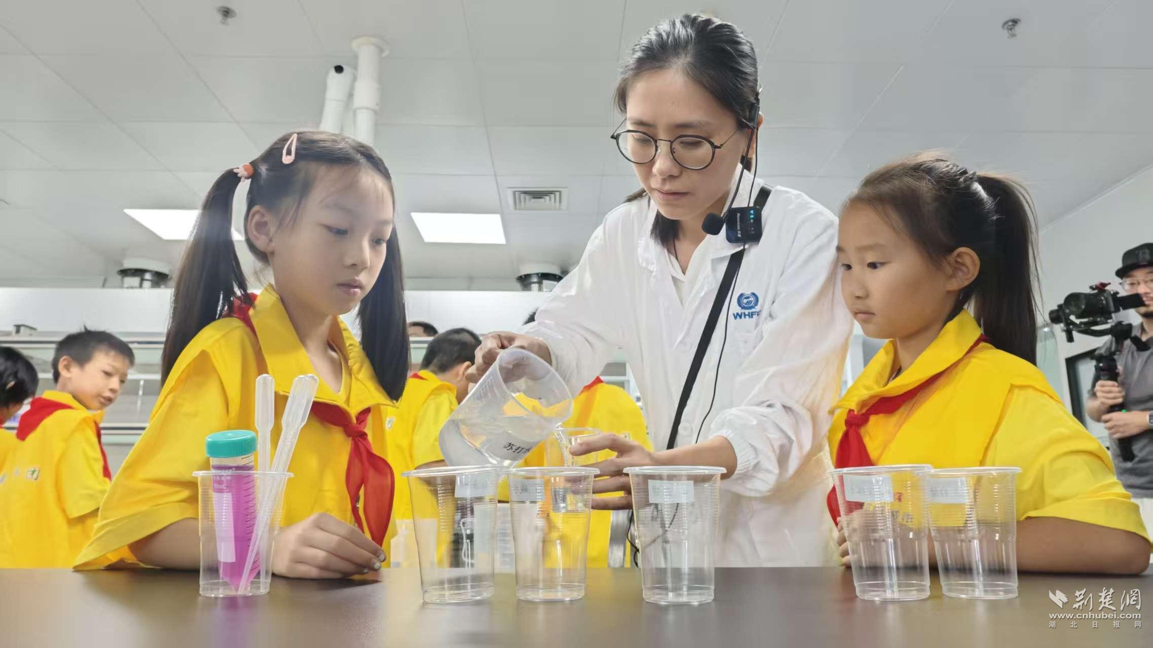 “小黃鶴觀察團”的觀察員們在武漢食品化妝品檢驗所科普基地展廳,通過“聲、光、電”科技和多媒體技術(shù),沉浸式學(xué)習(xí)食品安全檢驗檢測和營養(yǎng)衛(wèi)生方面的科普知識。