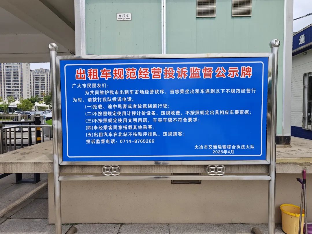 值得注意的是,今年7月,市交通運(yùn)輸綜合執(zhí)法大隊(duì)在大冶北站出站口設(shè)置了出租車投訴點(diǎn),旁有“出租車規(guī)范經(jīng)營(yíng)投訴監(jiān)督公示牌”,明確拒載、不按規(guī)定使用計(jì)價(jià)設(shè)備等行為可在此投訴。
