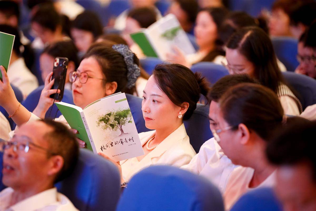 湖北日報訊(通訊員馬亞穎、周鑫) 秋陽溢彩,師道芬芳。9月10日,武漢市光谷實驗中學(xué)《校園里的常青樹》(第二輯)新書首發(fā)儀式在問道樓報告廳隆重舉行。全校教師歡聚一堂,以新書發(fā)布的形式慶祝屬于教育工作者的節(jié)日。2016年,武漢光谷實驗中學(xué)首提“常青精神”,鼓勵教師終身從教,矢志不渝。2020年將16名從教30年的教師的教育人生故事匯編成《校園里的常青樹》(第一輯),成為了學(xué)校寶貴的精神財富和高質(zhì)量發(fā)展的蓬勃力量。今天,《校園里的常青樹》(第二輯)新書首發(fā),15名從教30年的教師歷經(jīng)10個月的寫作和編校,把他們寶貴的人生閱歷和經(jīng)驗?zāi)毘晌淖?,讓校園常青樹精神不斷傳承,枝繁葉茂。
