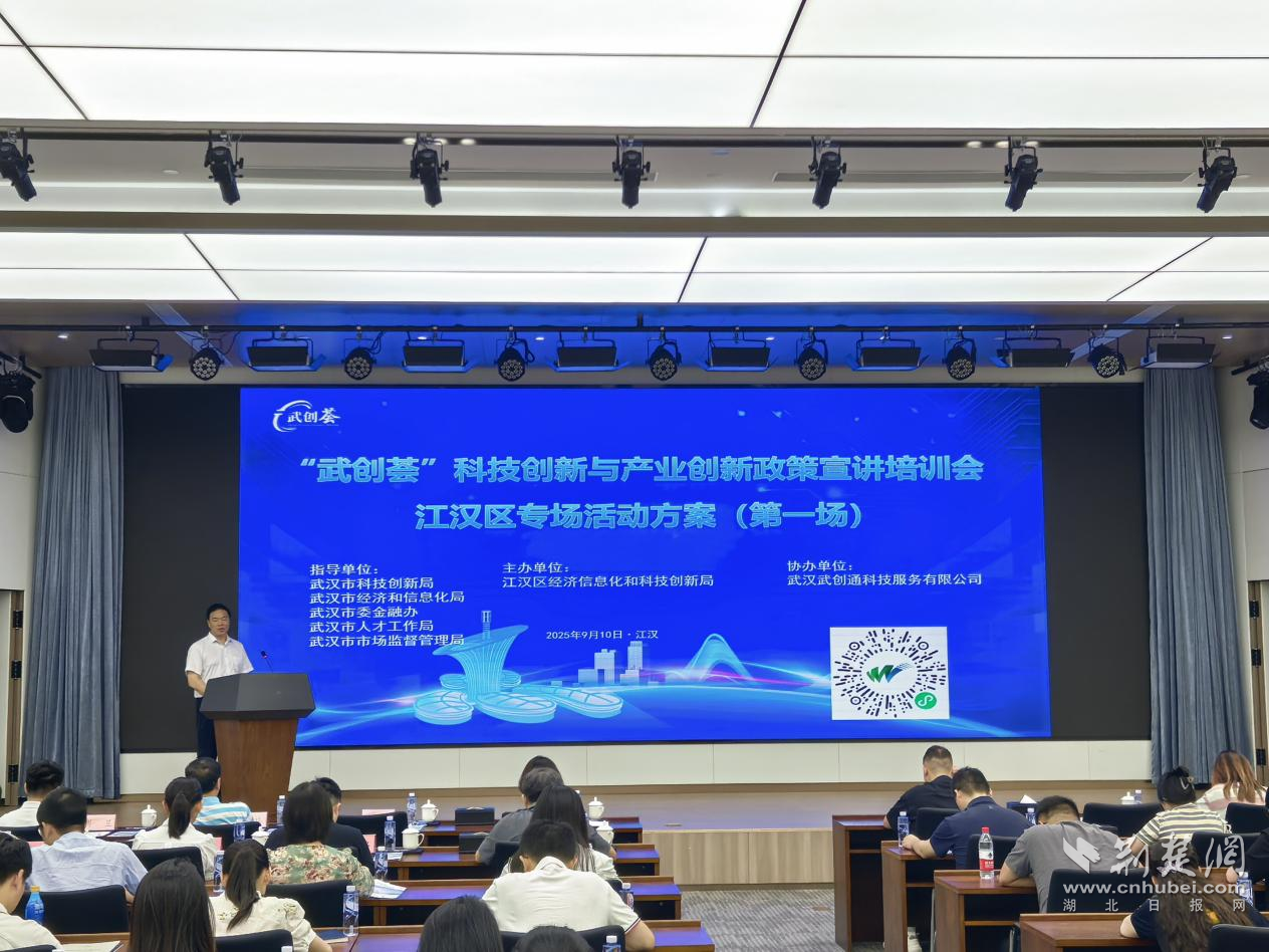 荊楚網(wǎng)(湖北日?qǐng)?bào)網(wǎng))訊(記者 何婧 通訊員 蘭子君 李卉)9月10日上午,“武創(chuàng)薈”科技創(chuàng)新與產(chǎn)業(yè)創(chuàng)新政策宣講培訓(xùn)會(huì)——江漢區(qū)第一場(chǎng)專場(chǎng)活動(dòng)在武漢金融街大廈舉行?;顒?dòng)由江漢區(qū)經(jīng)科局主辦,金融街集團(tuán)、武創(chuàng)通科技公司承辦,武漢市科創(chuàng)局、市經(jīng)信局、市委金融辦、市人才工作局、市市場(chǎng)監(jiān)管局聯(lián)合指導(dǎo)。