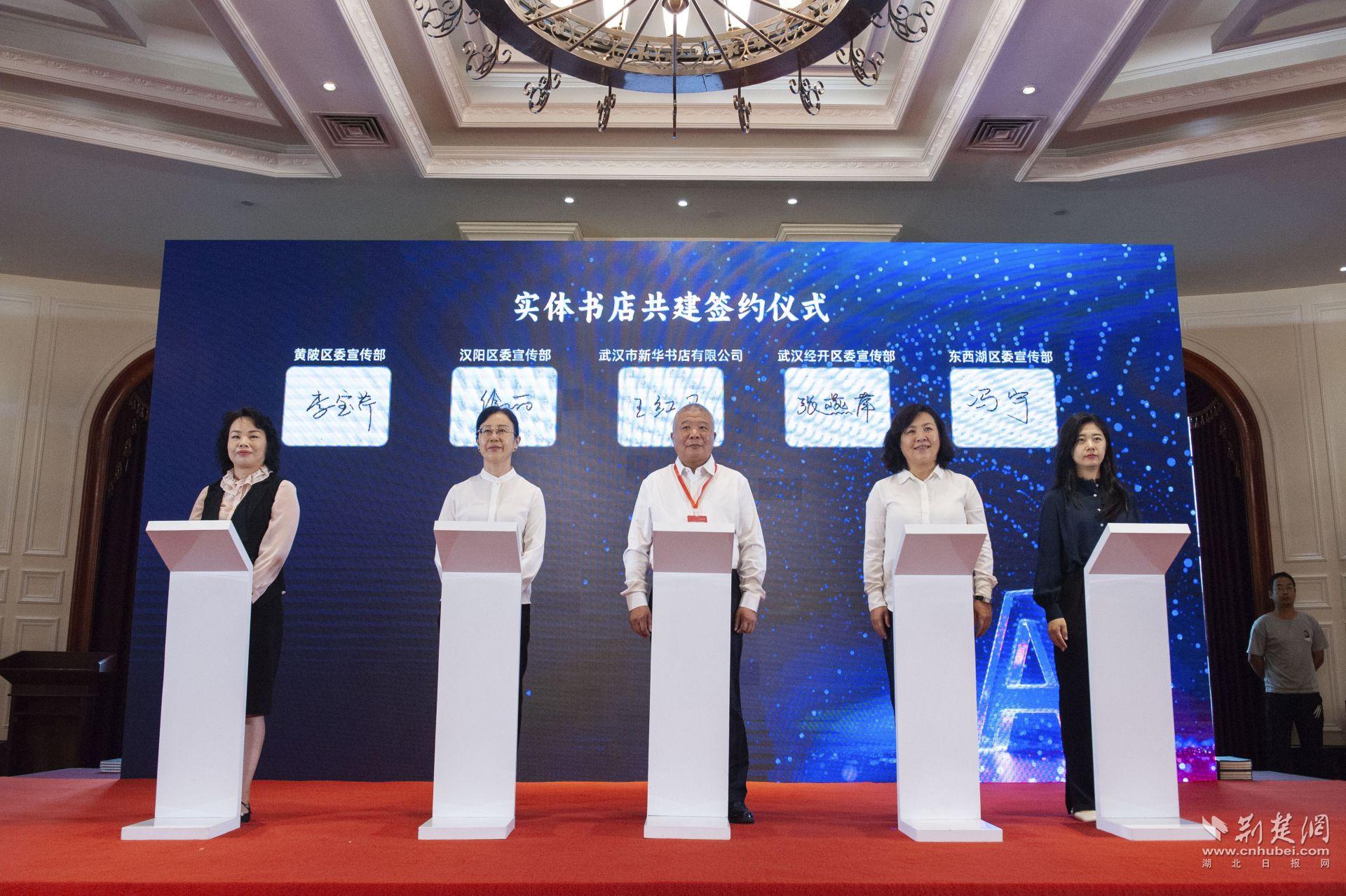 會上,武漢出版集團分別與科大訊飛、理工數(shù)傳等企業(yè)及多位學(xué)者簽訂戰(zhàn)略合作與出版協(xié)議。武漢市新華書店還與武漢經(jīng)開區(qū)、東西湖區(qū)、漢陽區(qū)、黃陂區(qū)簽訂實體書店共建協(xié)議。