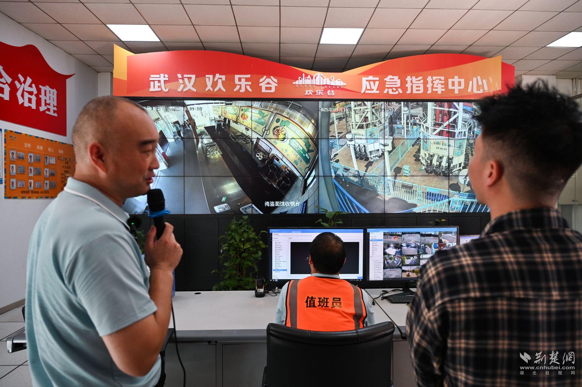 在武漢歡樂谷指揮中心,市民代表們目睹了數(shù)十個電子屏整齊排列,嚴密監(jiān)控著園區(qū)內(nèi)的各個角落。在這里,值班人員通過監(jiān)控設備的實時畫面,細致查看設備每日早檢及安全運營狀況,園區(qū)餐廳也借助智慧監(jiān)管平臺實現(xiàn)了透明化管理。