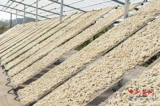而這樣的環(huán)境催生了“豆絲”這一鄂州傳統(tǒng)美食。除了大米外,綠豆、黃豆、葛根等“豆絲”原材料生長(zhǎng)在山溝、溪邊、林中?!懊磕耆攵?,幾乎家家起大灶開(kāi)始制作豆絲,風(fēng)干后可以留存整個(gè)冬天?!敝軛罱榻B。