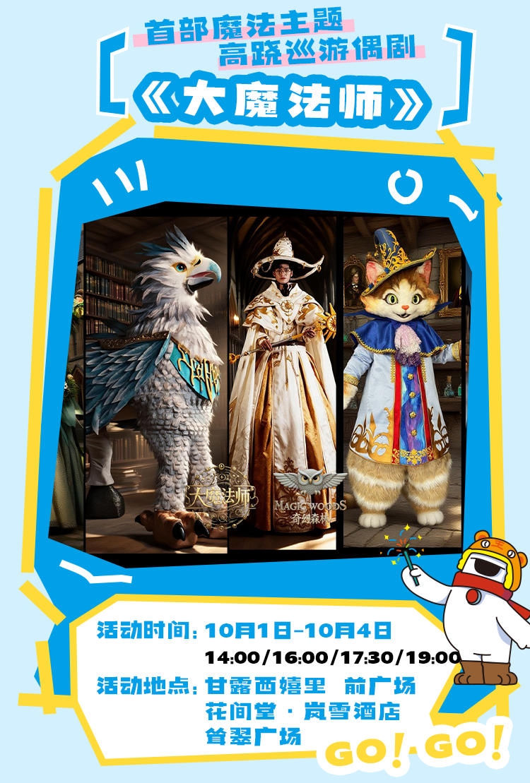 烏鎮(zhèn)戲劇節(jié)演藝團(tuán)隊(duì)將空降甘露山,這支魔術(shù)團(tuán)隊(duì)為游客帶來(lái)最新力作——中國(guó)首部魔法主題高蹺木偶劇《大魔法師》武漢首演,這也是該劇的全國(guó)首演,高2.4米白袍巫師哈瑞、精靈法師瑞秋、黑袍赫侖等IP角色震撼登場(chǎng),可一睹各類經(jīng)典魔法咒語(yǔ)現(xiàn)場(chǎng)版,感受大魔法的奇幻世界。
